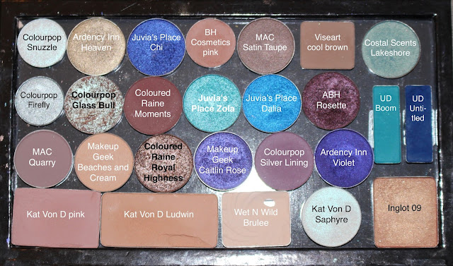 The main the reason I chose not to buy Sapphire, however, is that I actually have quite a few blue eyeshadows, which you can see in an older version of one of my custom palettes: